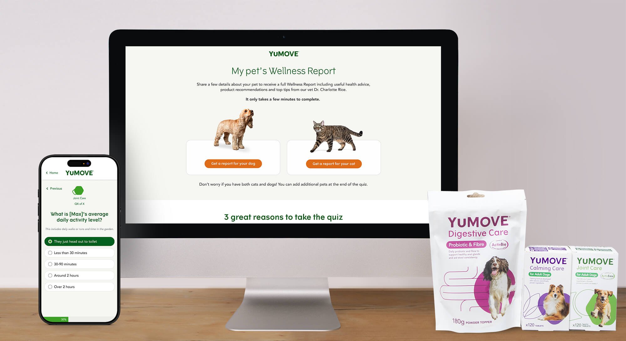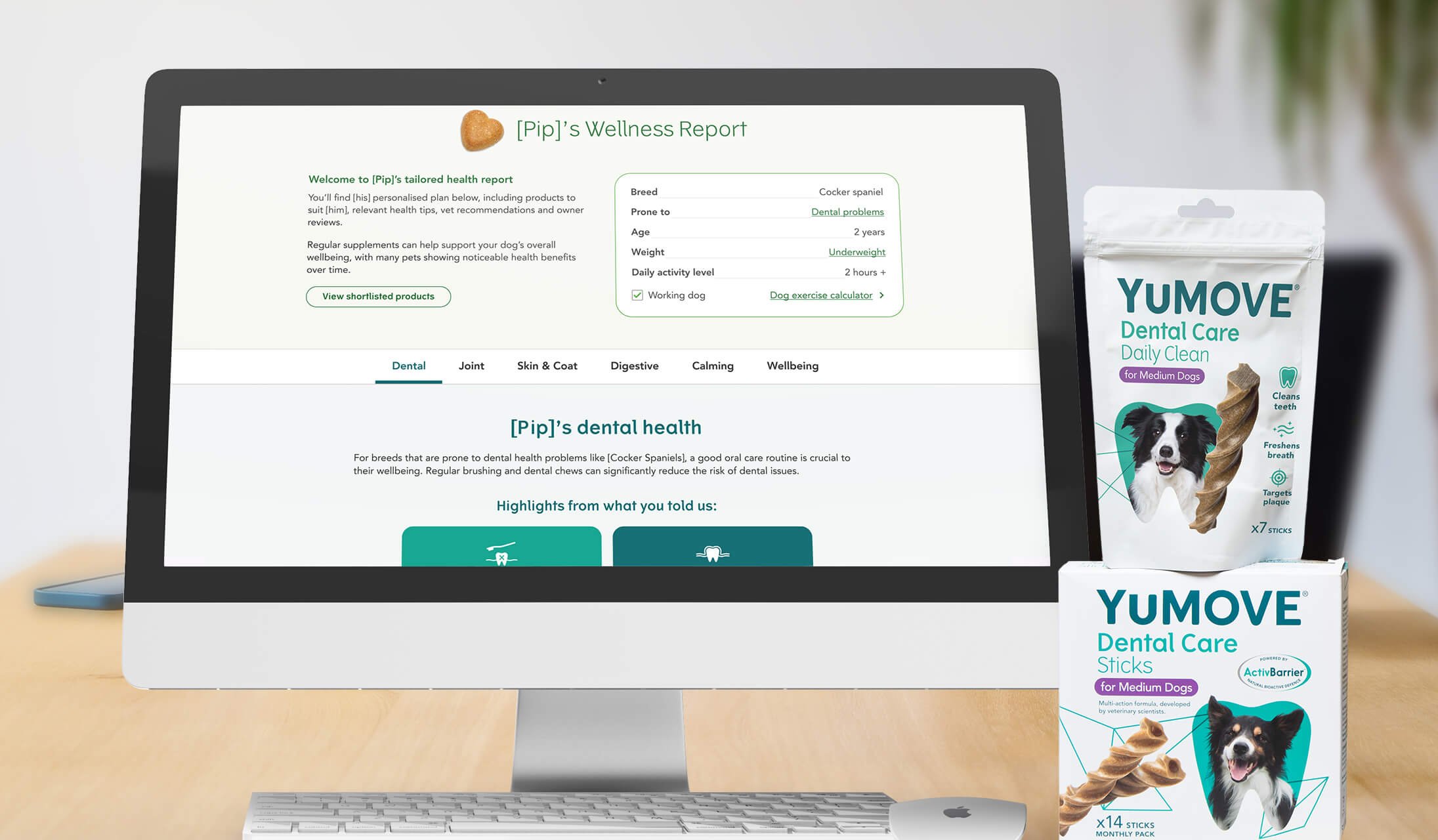 YuMOVE is best known for their dog joint care supplements, but their range goes much further — covering digestive health, dental care, calming support, skin and coat care, and vitamins too. The challenge was helping existing customers discover products that could genuinely benefit their pet, without it feeling like a push to buy. The pet wellness quiz and report was the answer.